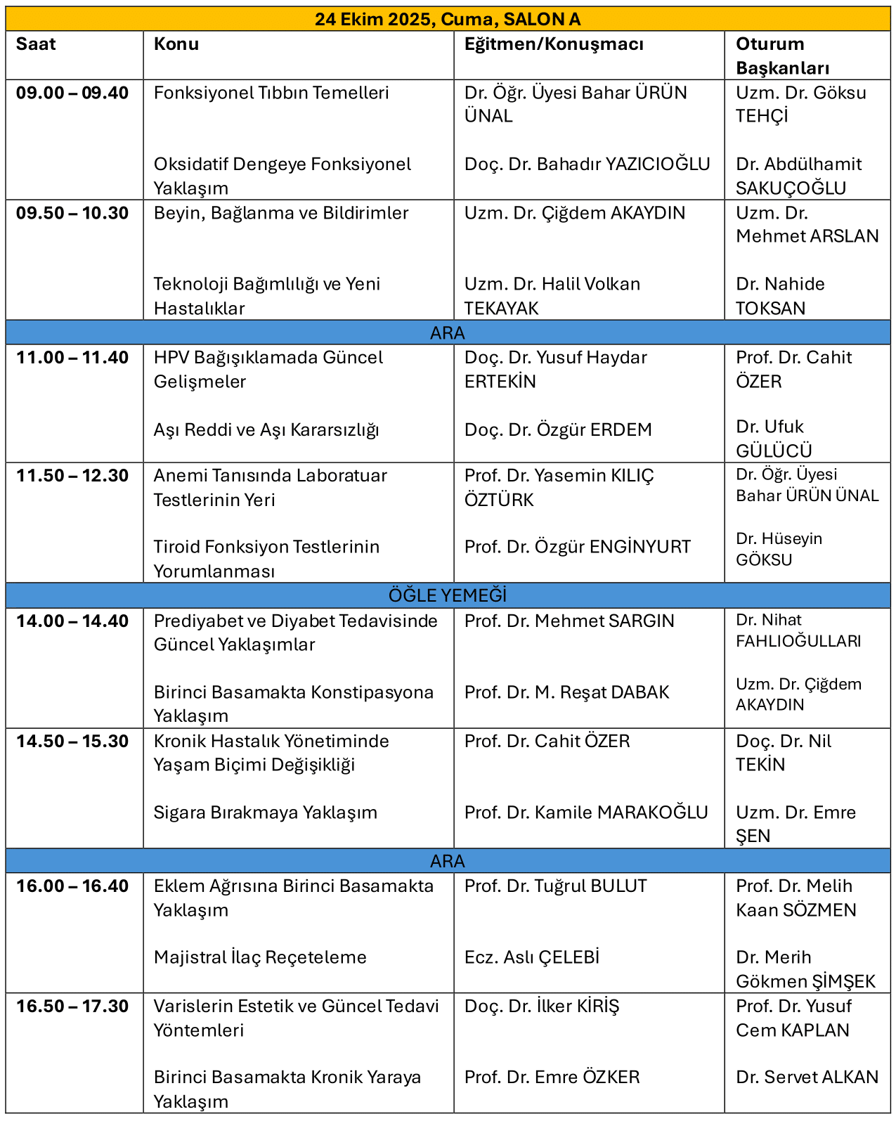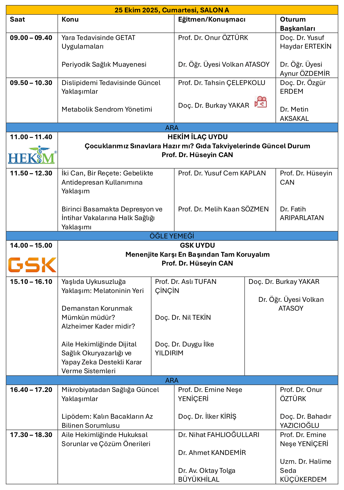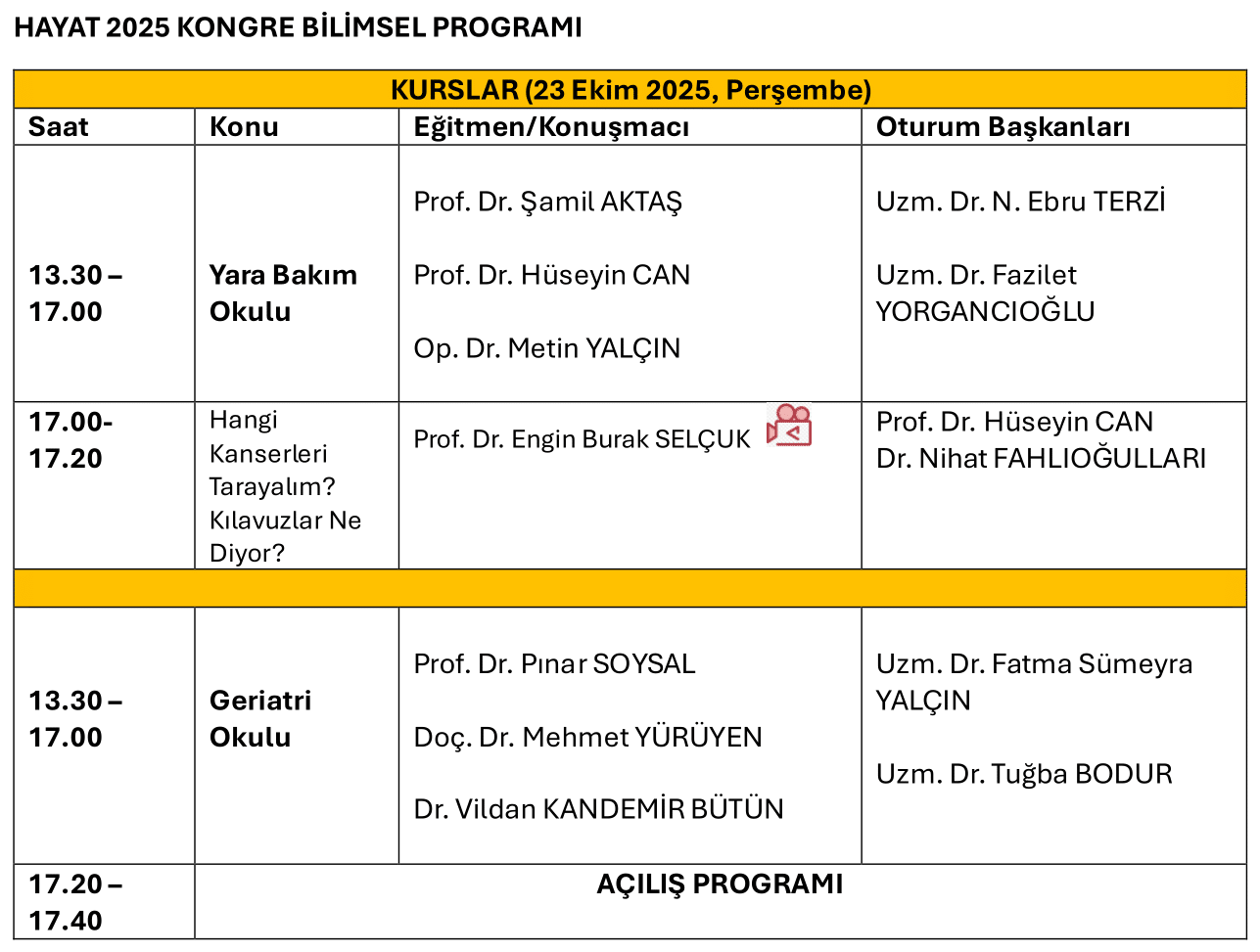 Kurslar, paneller, sözel ve poster bildiriler, interaktif katılımlı oturumlarla birinci basamakta aklımıza takılan sorulara yanıt bulduğumuz, sosyal programı ile yorgunluk ve stresten uzaklaşacağımız dolu dolu bir HAYAT 2025 bizleri bekliyor.