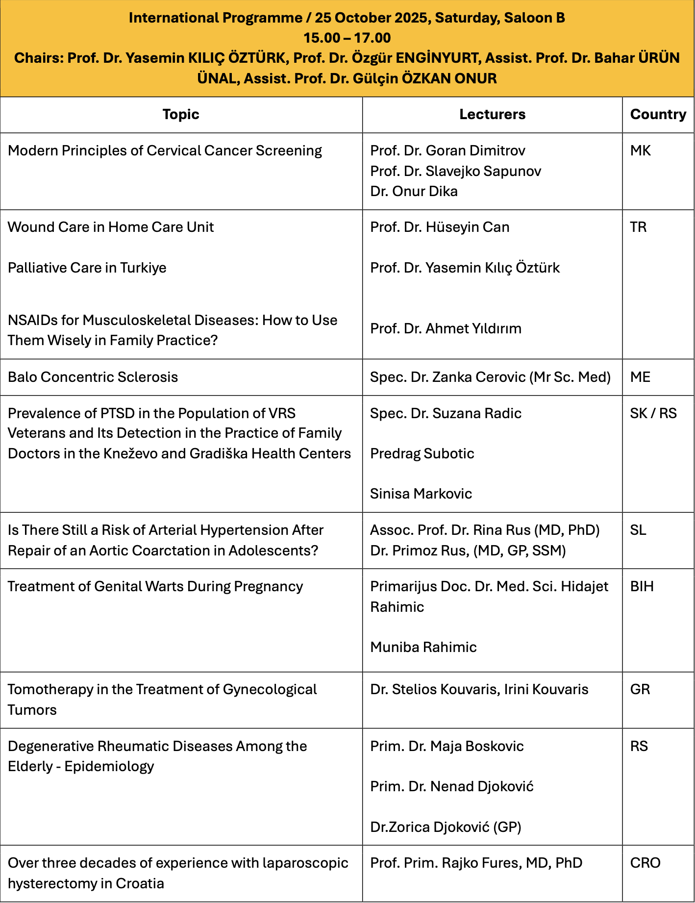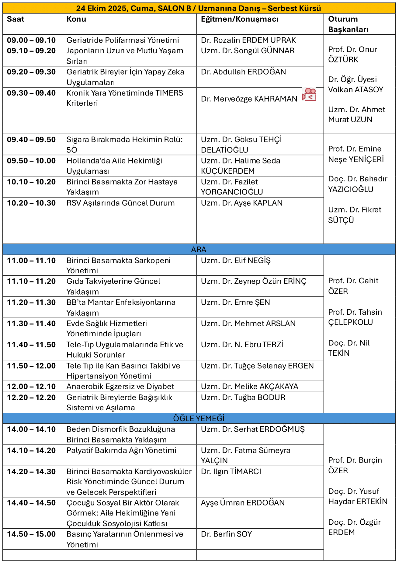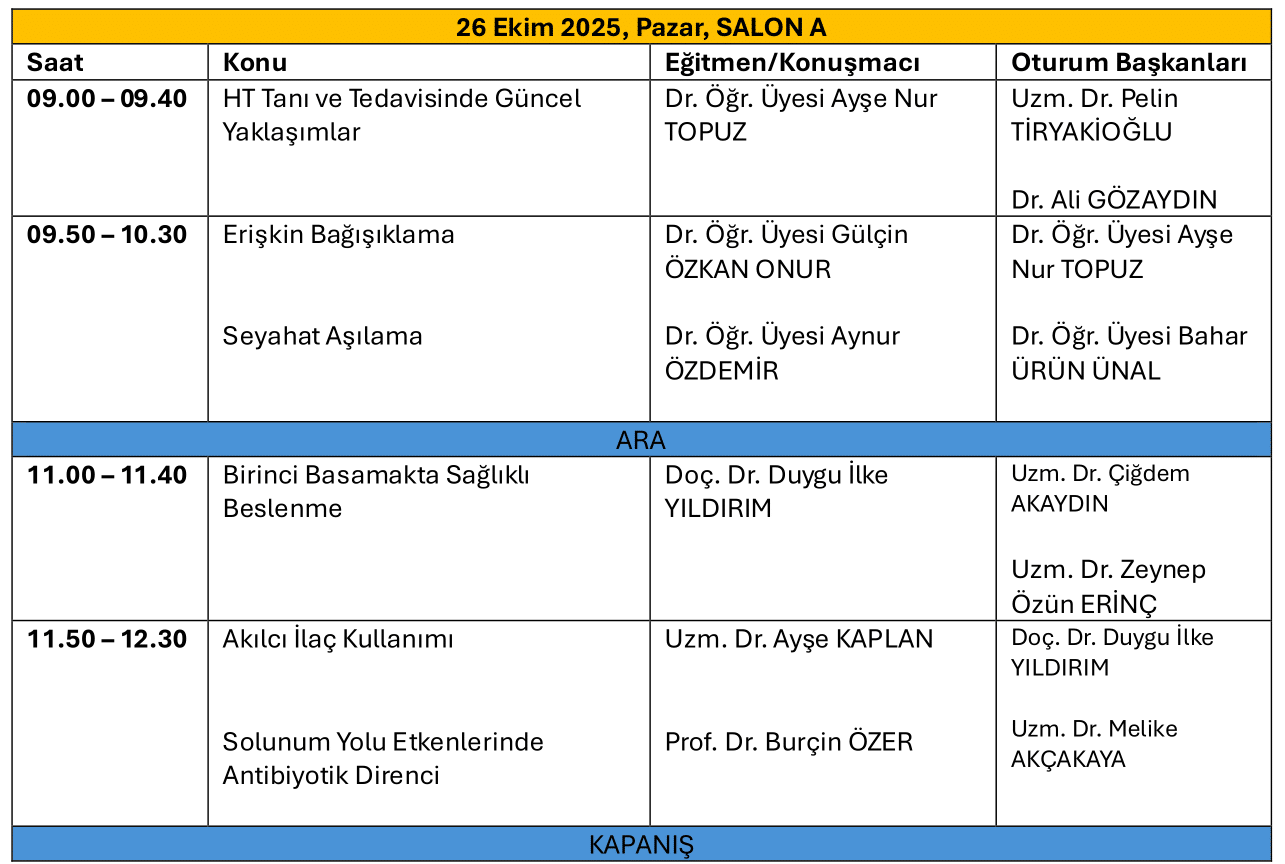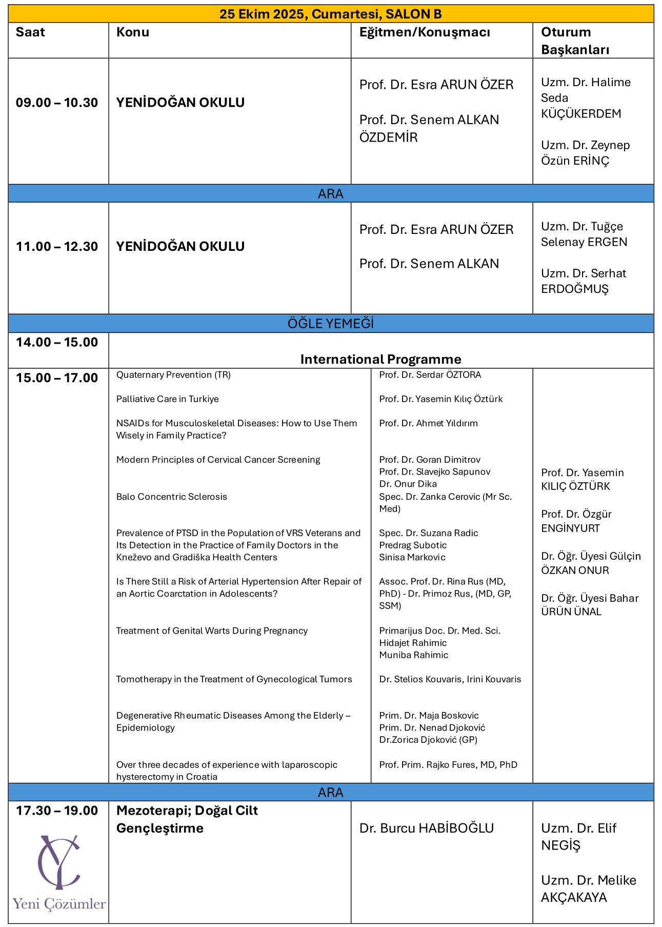Kurslar, paneller, sözel ve poster bildiriler, interaktif katılımlı oturumlarla birinci basamakta aklımıza takılan sorulara yanıt bulduğumuz, sosyal programı ile yorgunluk ve stresten uzaklaşacağımız dolu dolu bir HAYAT 2025 bizleri bekliyor.